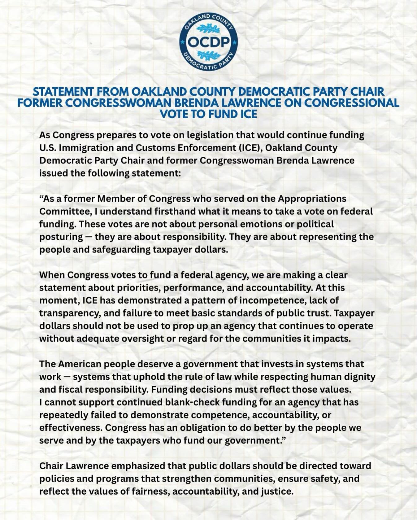 Visit the Chair’s Corner for an important press release from Chair Lawrence in response to fear-based rhetoric from the Oakland County Republicans.