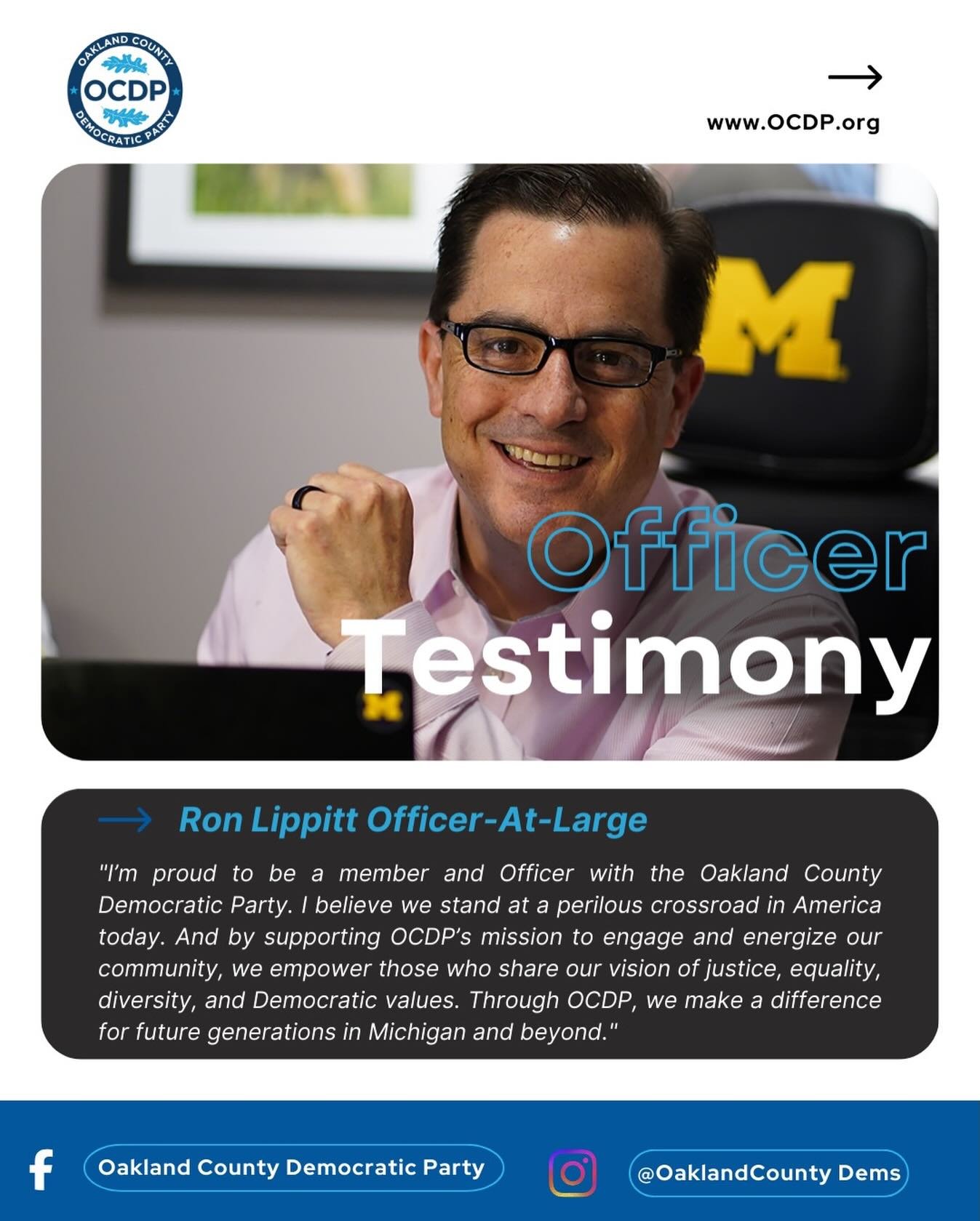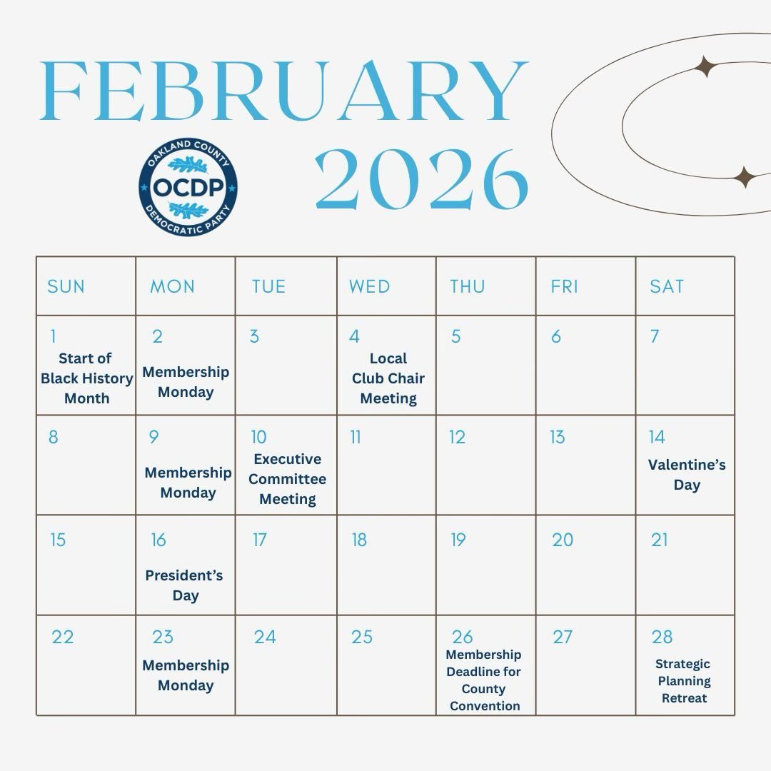 In 2026, OCDP is focused on recruiting and helping Democratic candidates to run in local lections, promoting social and economic justice, and building an engaged Democratic majority in Oakland County in order to enhance the quality of life for all. Please join us with your activism, your membership, your votes and your voice to help move Michigan forward.
